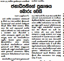 ස්තුතියි. අපේ දරැවො ගැලෙව්වට. ඉතිං දැං ඔය රටරාජ්ජ වලට දේපල පවවරන්නෙ ආදායම් ලබන්නද කියල චන්දෙට කලියෙන් ජනතාවට තේරැම් කරනවනම් කවුරැත් සතුටු වේවි නේද. තාමත් ජන උදානෙ ගැන කතාවක් නෑනෙ.